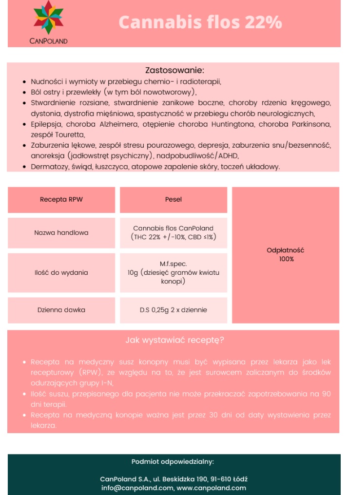 Łódzka firma farmaceutyczna CanPoland S.A., znana z produkcji i obrotu medyczną marihuaną, ogłosiła wprowadzenie do swojej oferty dwóch nowych produktów z kwiatów konopi. Polskie apteki wkrótce wzbogacą się o te wyjątkowe surowce farmaceutyczne.